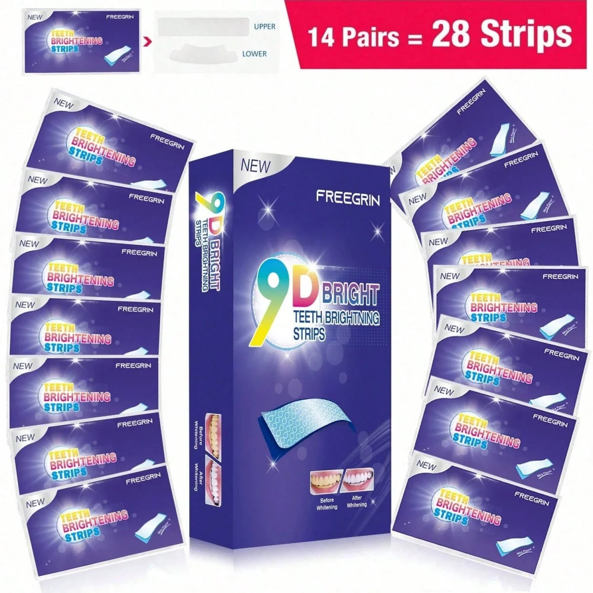 Detailed Product Description The 9D Teeth Whitening Strips are designed to deliver advanced teeth brightening results with consistent and easy at-home use. Formulated to help reduce surface stains and discoloration, these whitening strips support a cleaner, whiter smile by targeting stains caused by daily habits such as coffee, tea, soda, and other foods.