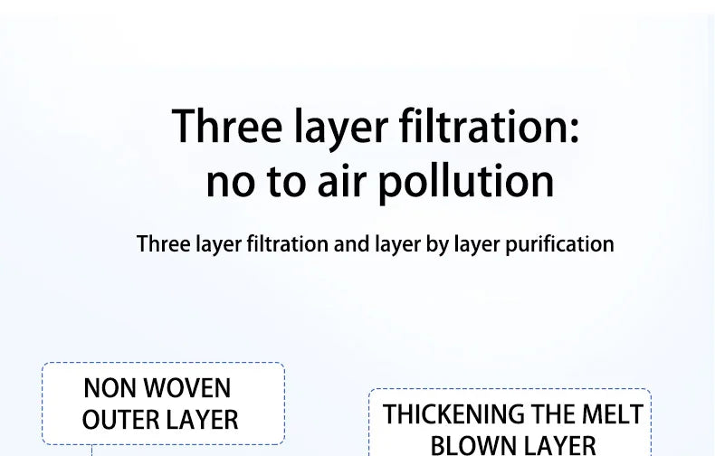 😷 3-ply protection – triple-layer filtration against dust, droplets, and particles.