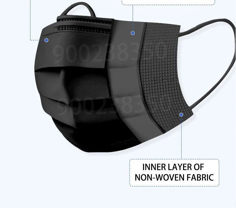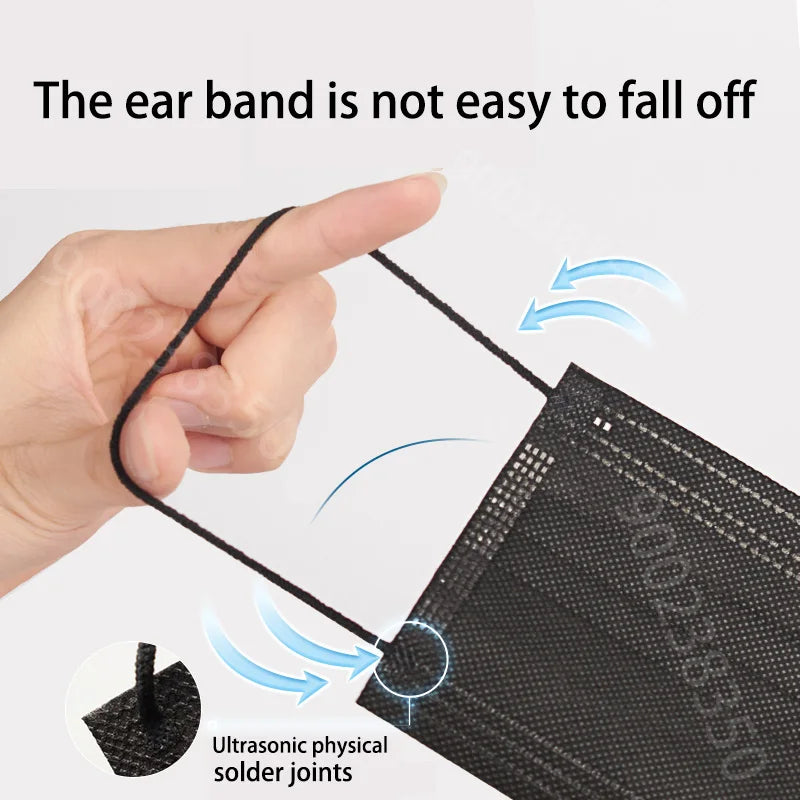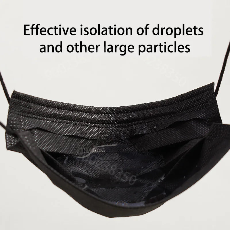 Stay protected and comfortable with these Disposable Black 3-Ply Face Masks, designed for everyday use. Each mask features a three-layer filtration system that effectively blocks dust, droplets, and particles, making it ideal for public places, travel, work, and outdoor activities.