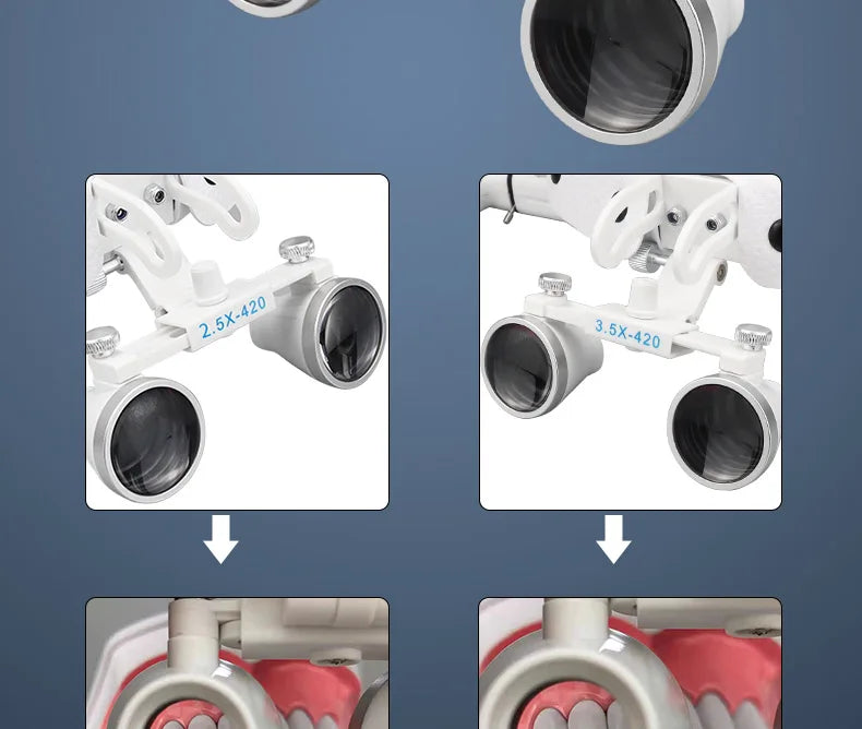 Enhance visibility and precision with these Dental Surgical Loupes with LED Headlight, designed for dentists, surgeons, and lab professionals. The binocular loupes offer 2.5X or 3.5X magnification, providing clear, detailed views for delicate procedures.