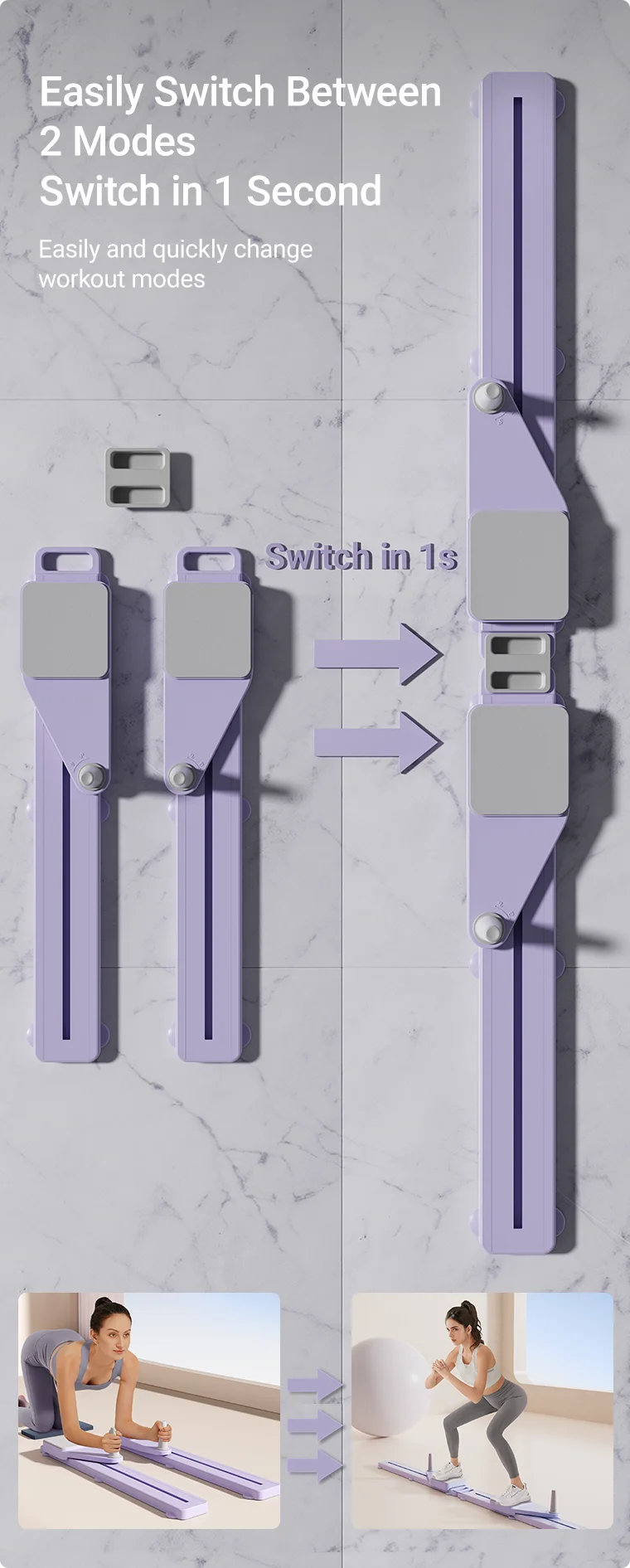 2-in-1 design for core and leg training