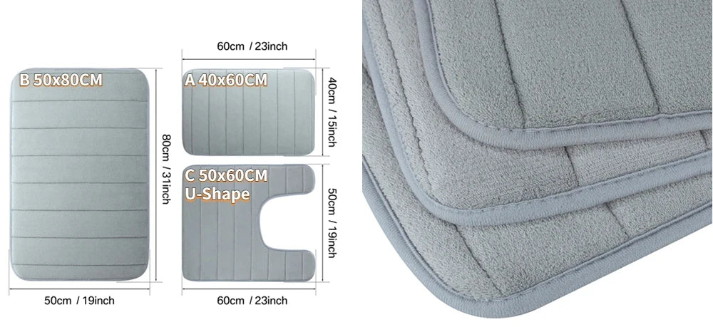 Upgrade your bathroom with this 3-piece Non-Slip Memory Foam Bath Mat Set, designed to provide plush comfort and safety. Crafted from soft, absorbent memory foam, these mats quickly soak up water and dry fast, keeping your floors clean and slip-free. The non-slip backing ensures secure placement on any bathroom floor, while the machine washable fabric makes cleaning effortless. Perfect for home bathrooms, this set adds warmth, style, and functionality to your daily routine.