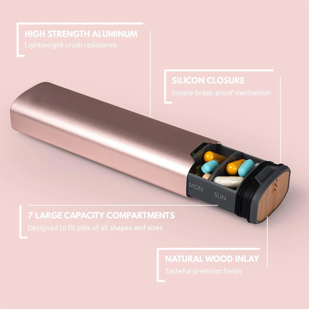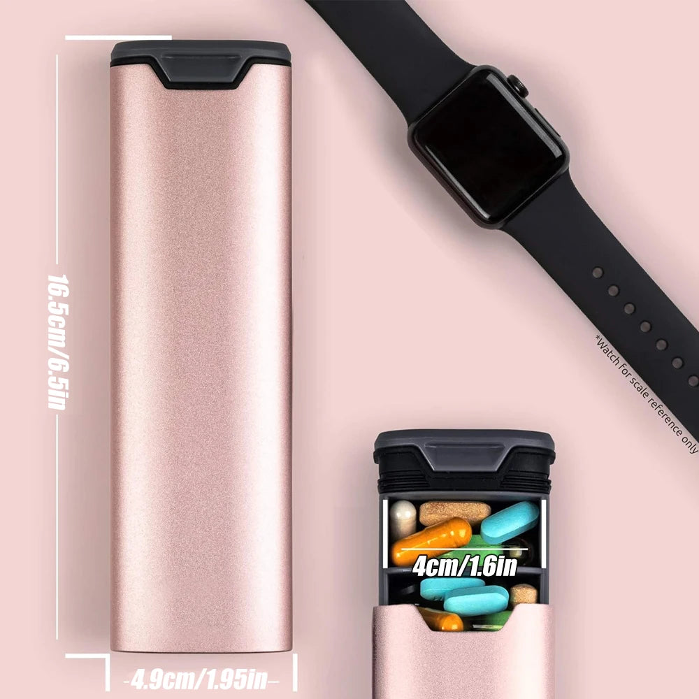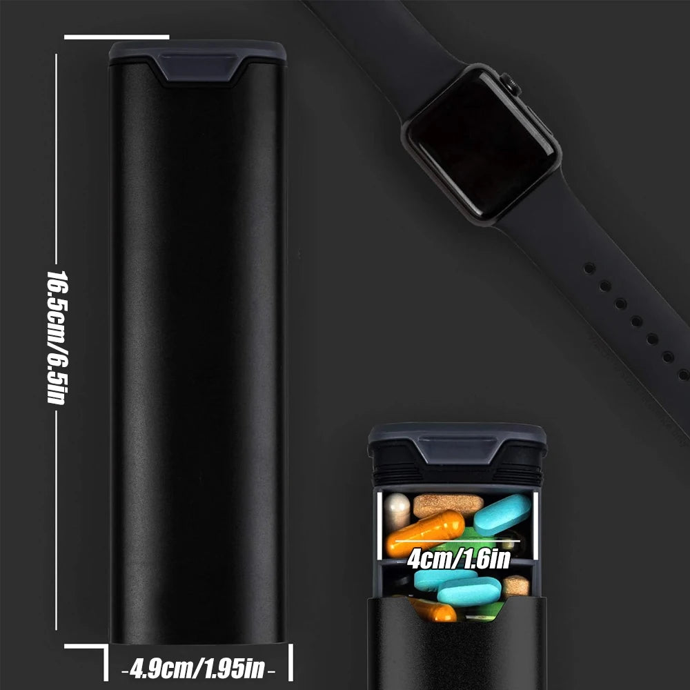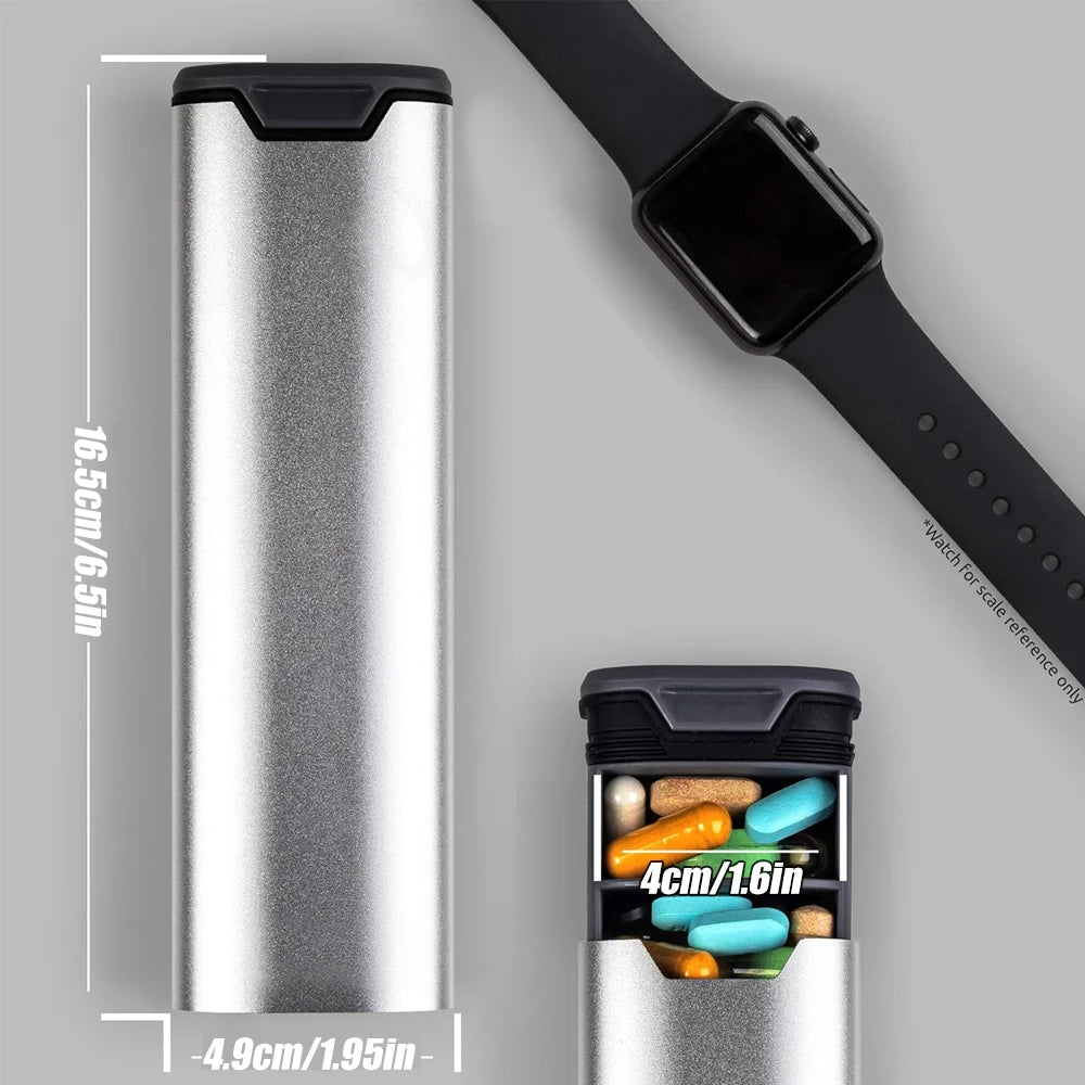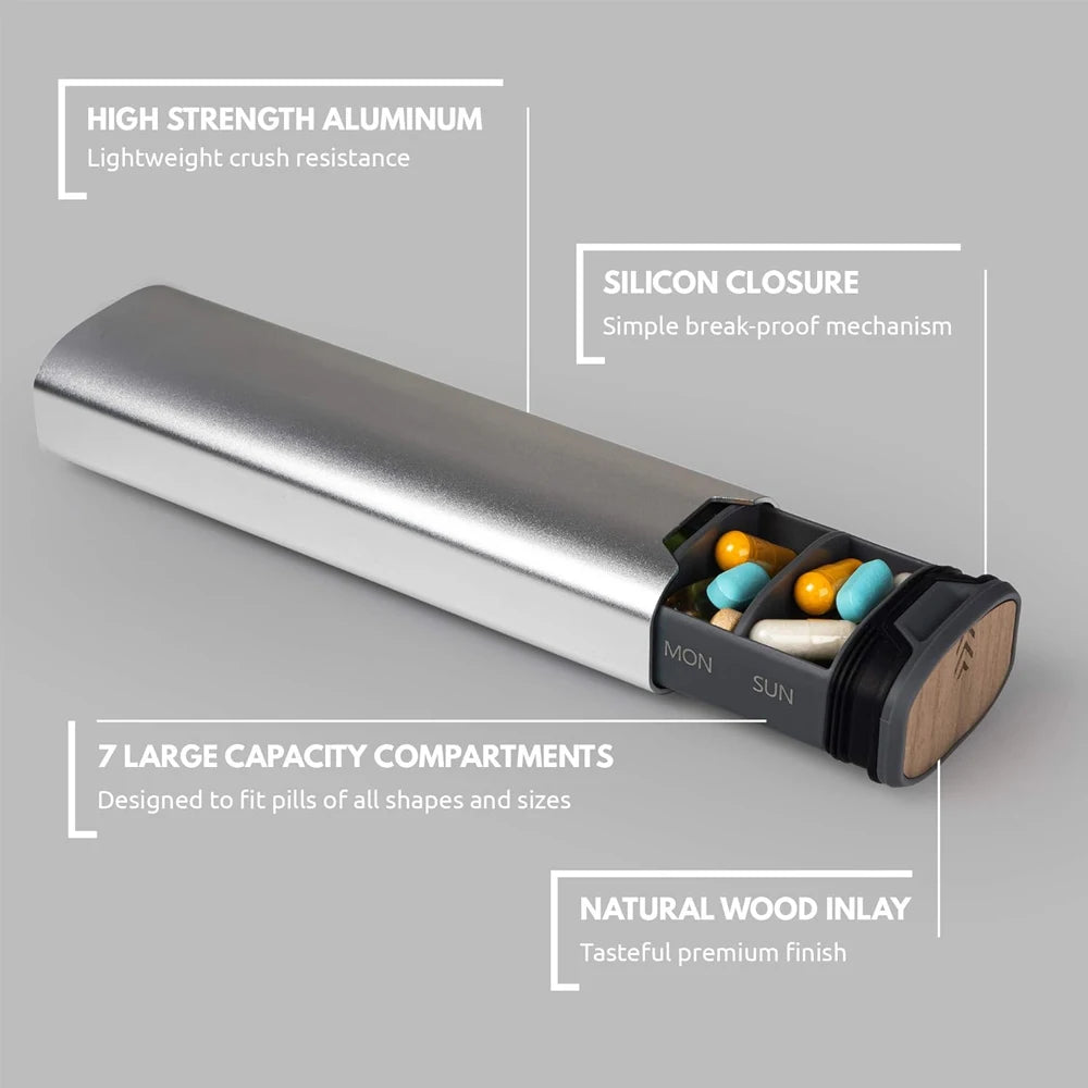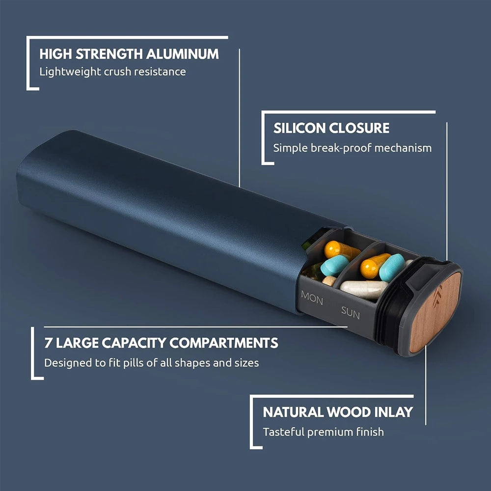 Made from durable, lightweight aluminum, it offers a sleek, modern look while keeping your pills safe from moisture and spills. The individual compartments are clearly labeled for each day of the week, making organization simple and accessible for all ages. Whether you're managing complex prescriptions or daily vitamins, this pill case ensures you never miss a dose.