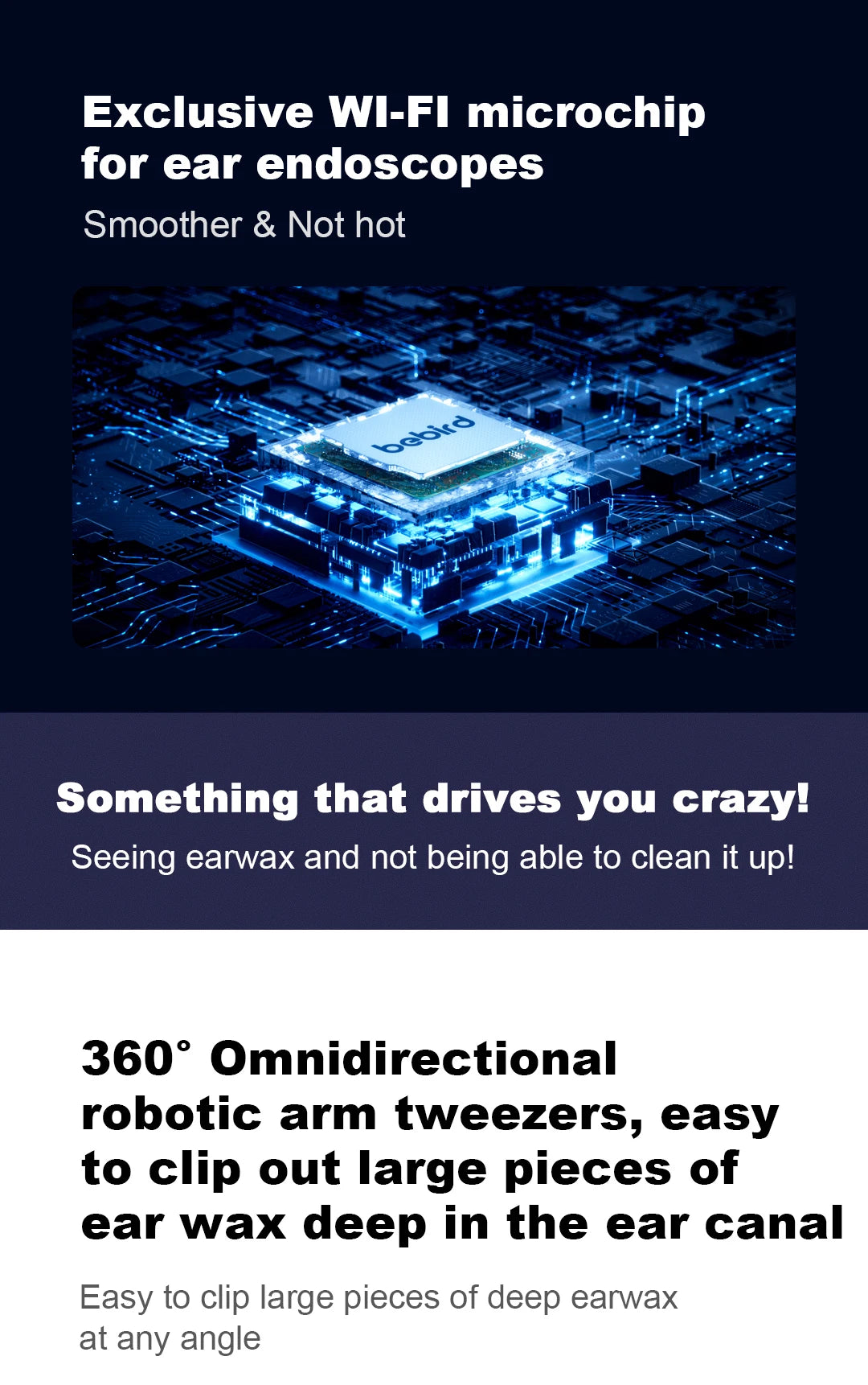 Upgrade your ear care routine with the Bebird Note5 Smart Visual Ear Stick – a next-generation otoscope designed for safe, precise, and effective cleaning. Equipped with a high-definition mini camera, this device allows you to see inside your ear canal in real time using your smartphone, ensuring safer and more accurate ear wax removal.