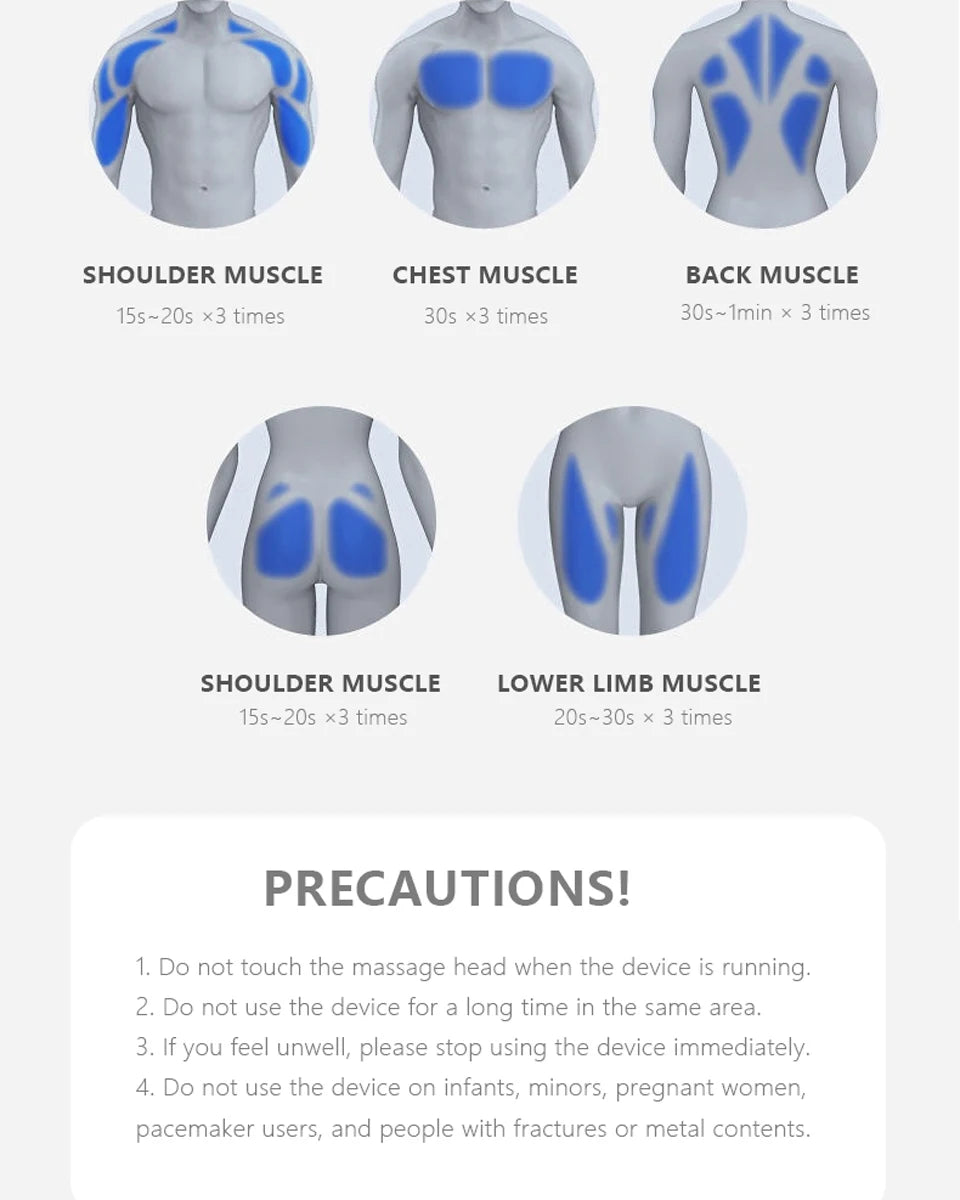 Full-Body Relief – Targets neck, shoulders, back, arms, thighs, and calves.