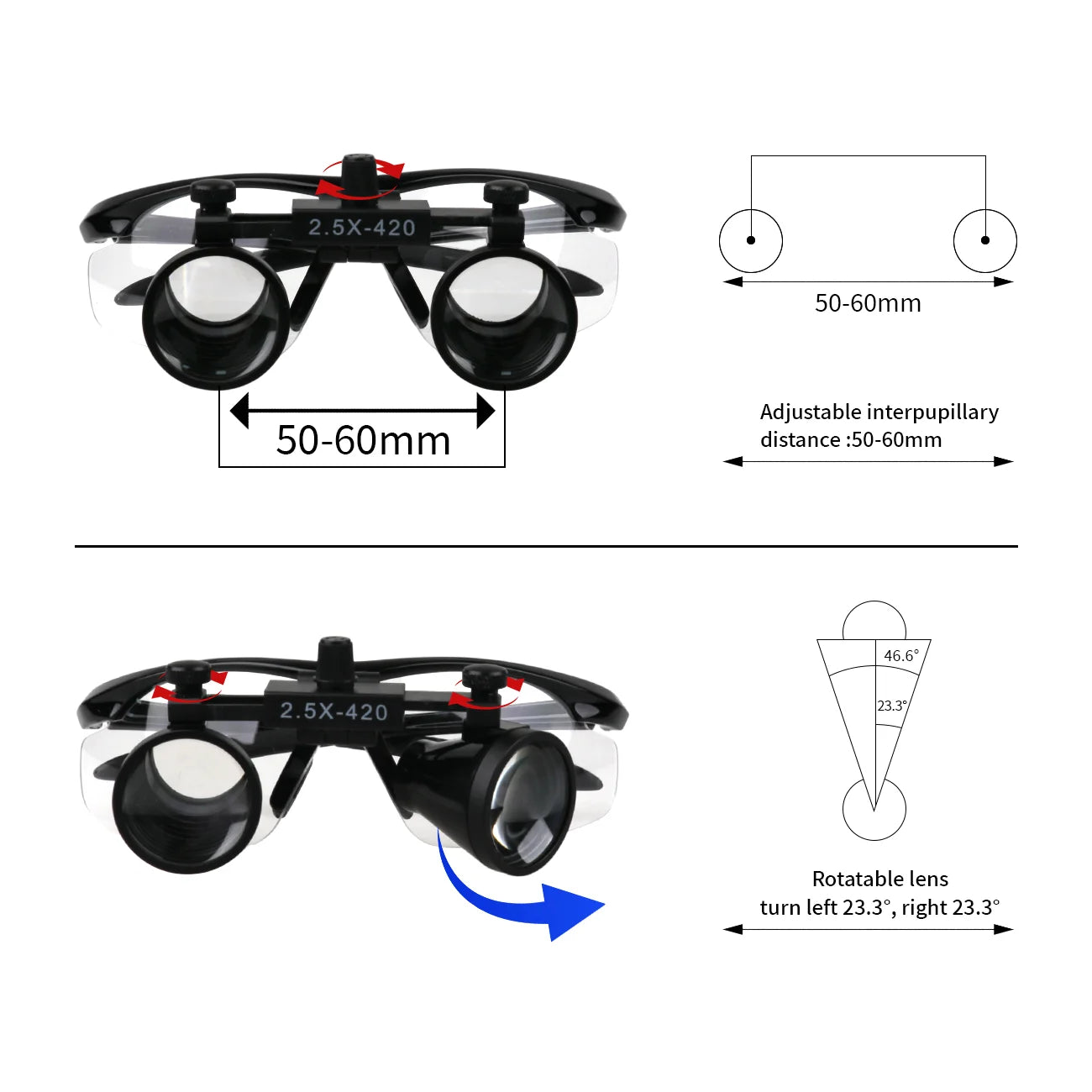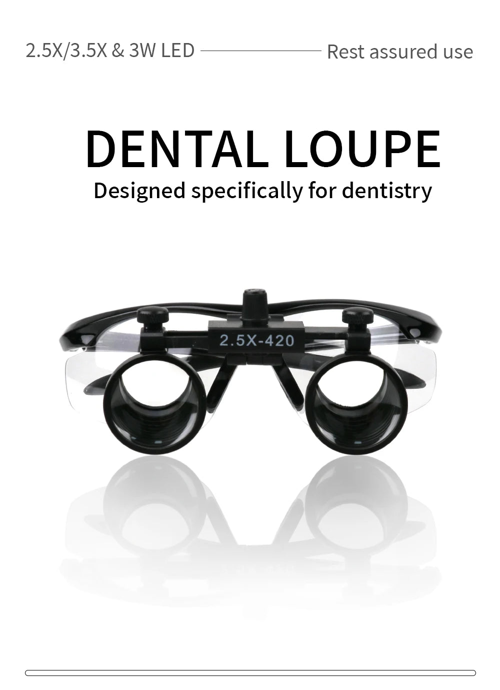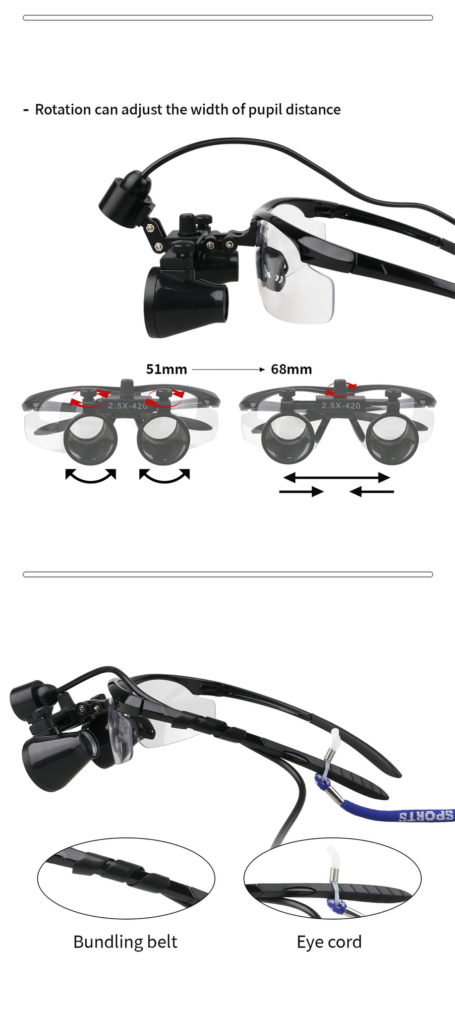 Equipped with a high-brightness LED headlight, these loupes ensure clear visibility even in low-light environments, reducing eye strain and improving accuracy. The lightweight, ergonomic frame provides comfort for long hours of wear, while the adjustable optical system offers flexibility to meet different clinical needs.