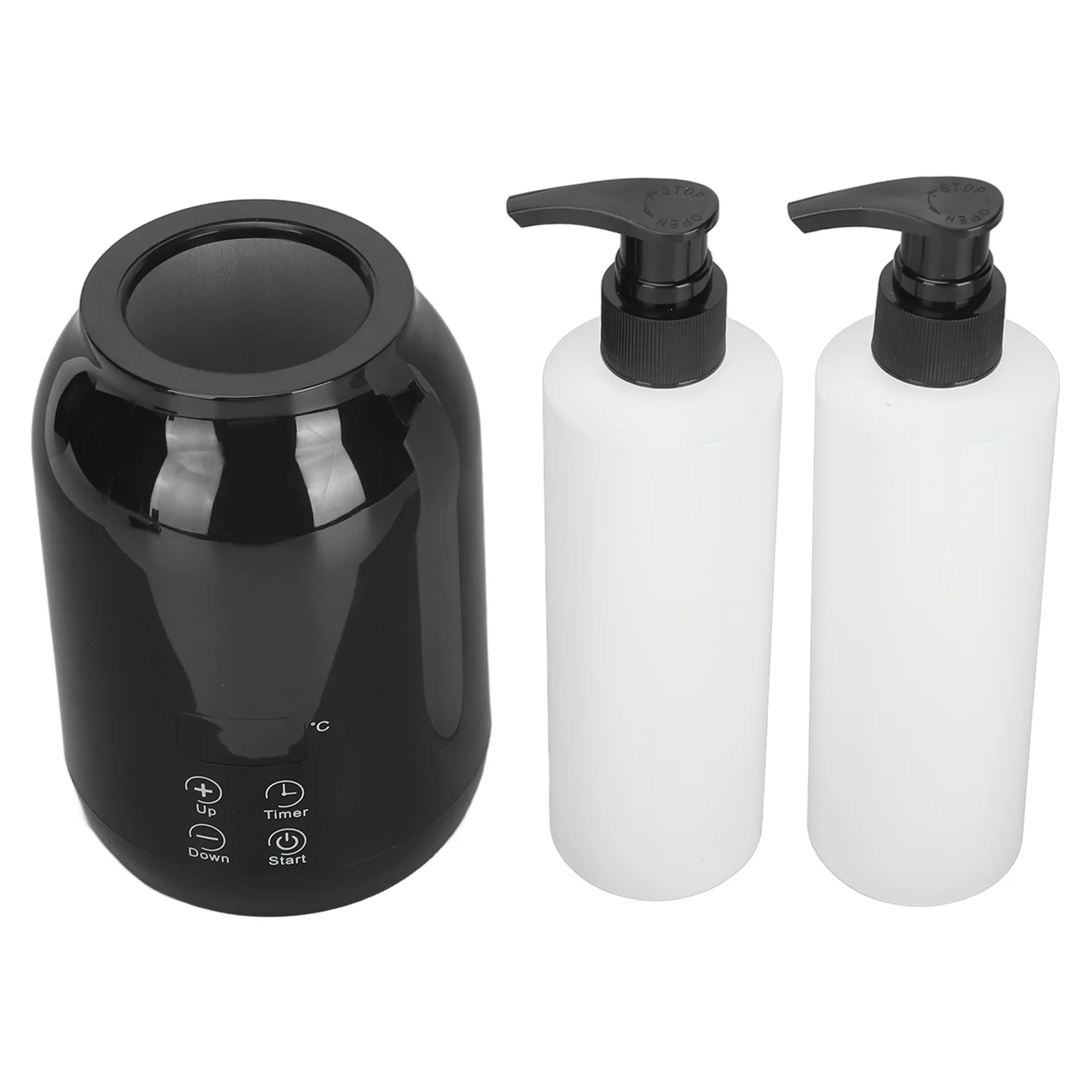 1. Fill the supplied bottle dispenser with essential oil and cream and place it in the heater. Then press the "Start" button to adjust the temperature.