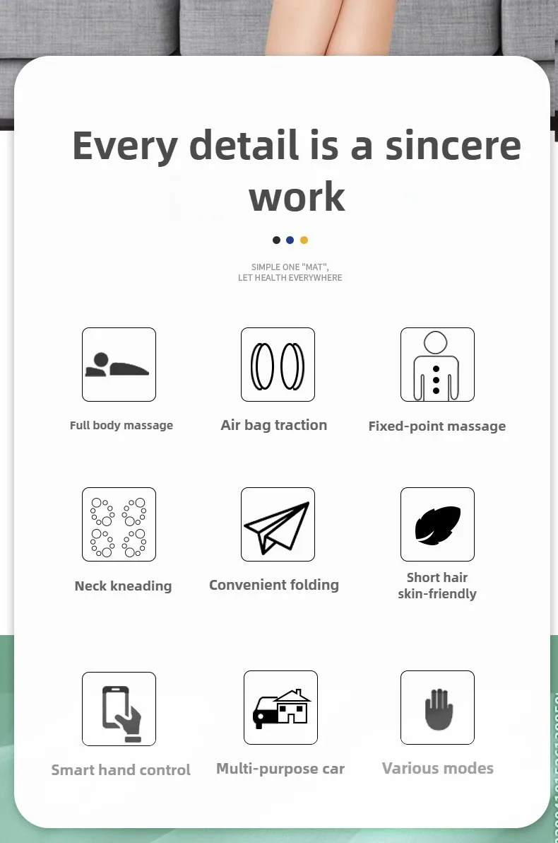 Relax anytime, anywhere — whether at home, in the office, or on the road. This foldable massage mat delivers a full-body comfort experience through intelligent simulation massage and multi-point support.