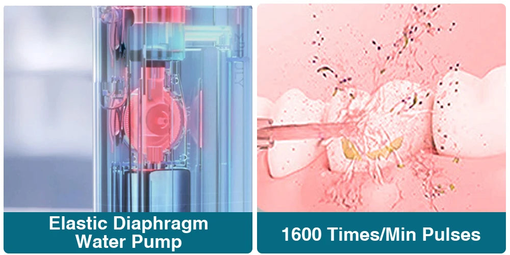 ✔ High-pressure water jet – deeply cleans between teeth and gums.