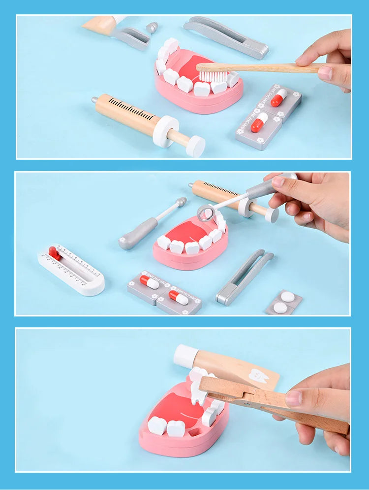 Wooden Pretend Play Doctor Educational Toys for Children Simulation Dentist Check Brush Teeth Medicine Set Role Playing Games